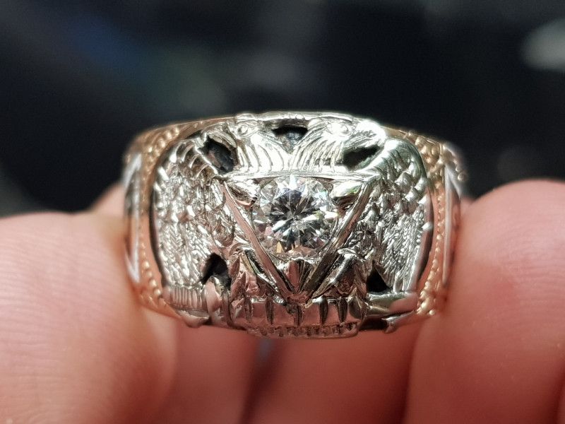 nhẫn mỹ xưa masonic vàng hồng 10k xoàn thiên nhiênChủ đề Masonic (Hội Tam Điểm) với những dấu hiệu của Nghi lễ Scotland cổ xưa, chuẩn nhẫn Masonic xưa, chi tiết còn cực kỳ sắc...