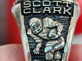 – Bên hông phải nhẫn khắc họa hình ảnh vận động viên bóng bầu dục - đặc biệt khi zoom lên ta thấy được cả khuôn mặt người vận động viên sắc nét diệu kỳ - thật là 1 công nghệ đúc nhẫn tài tình. Phía trên khắc chữ Scott Clark