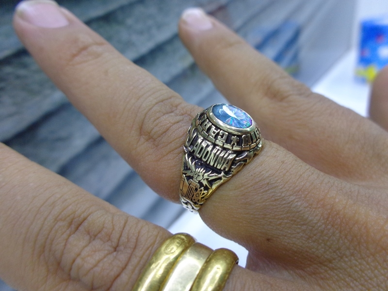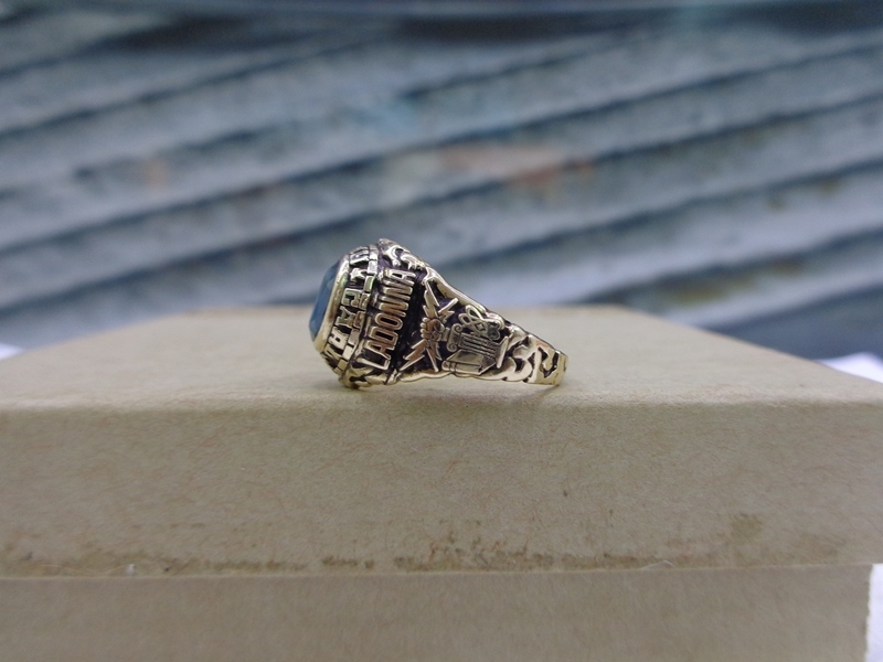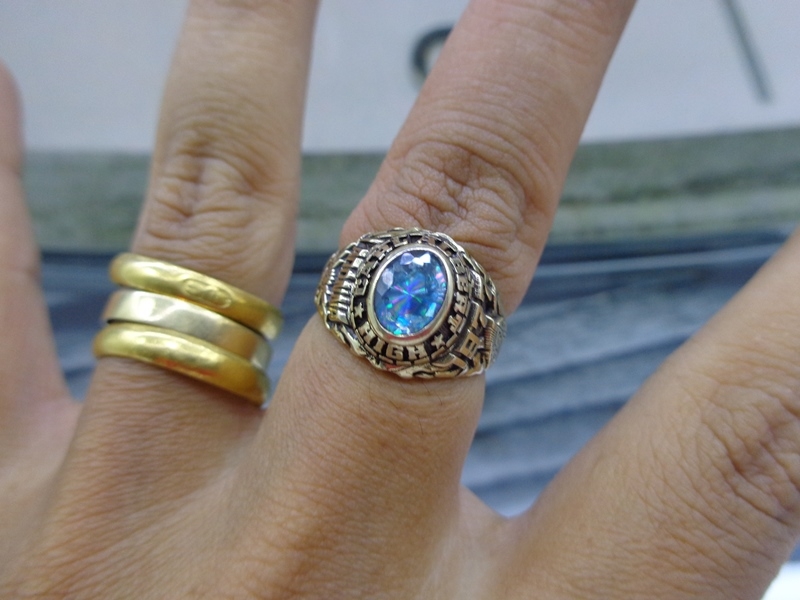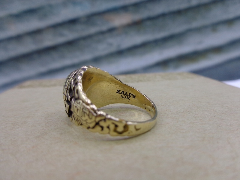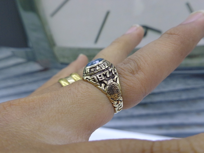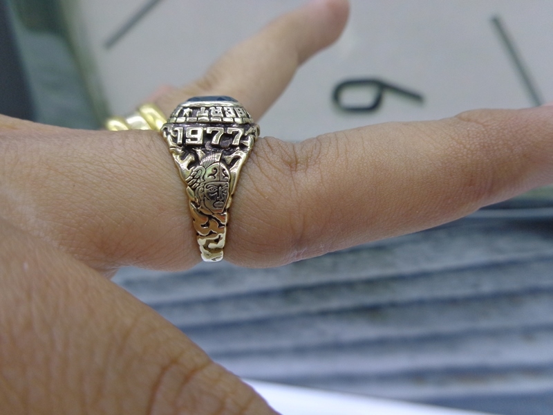 _ Bên hông phải là hình cuốn sách ,bông sao và chiếc cúp hình nắm tay sấm sét tượng trưng co sự quyết thắng. 1977 là năm sản xuất nhẫn cũng là năm tốt nghiệp của trường.